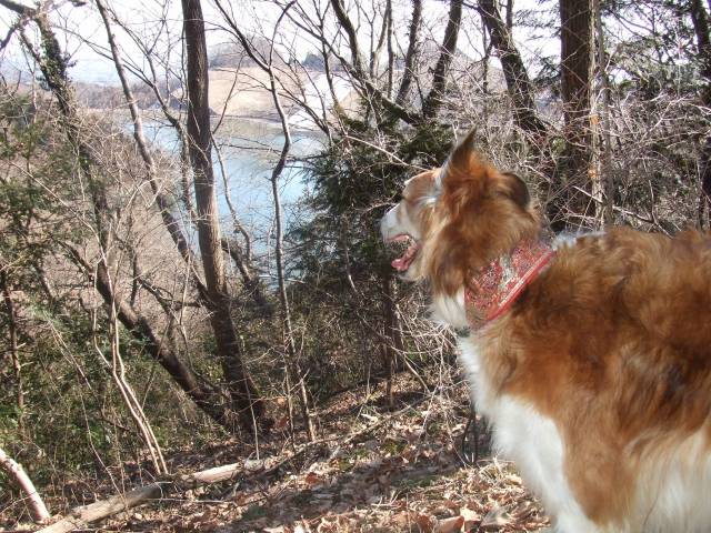 城山湖を見下ろし、