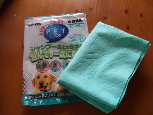 大型犬は体がすっぽり入るような、大きめのバスタオルが使いやすいのですが、