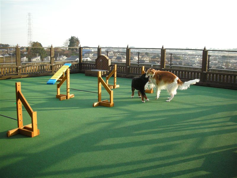 ドッグランの下はラバーチップで快適。わんこにもやさしいです。