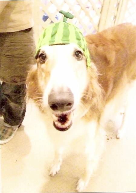 スイキャップを被らせて喜んでますよ。
